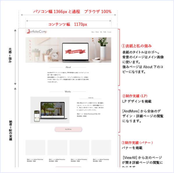 ワイヤーフレーム(設計図)の作成から、制作物等のコンテンツが入ったデザインカンプを完成させます。